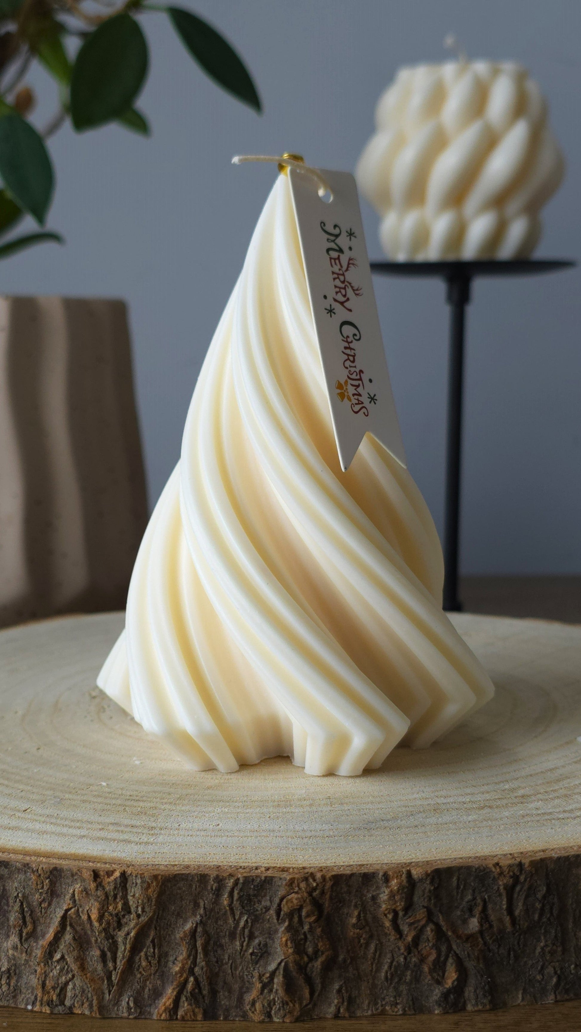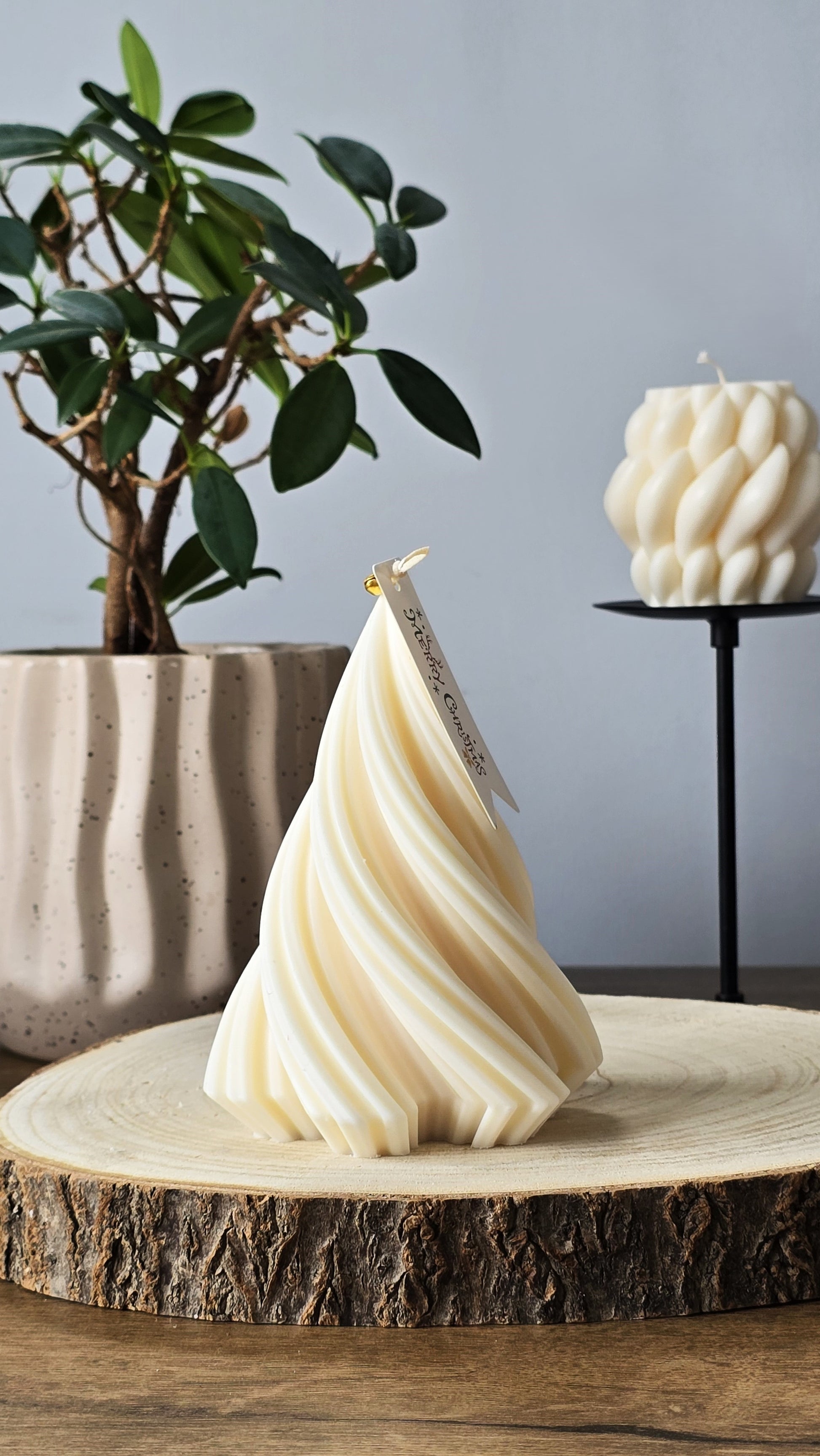 Breng feestelijke elegantie in je huis met de Grote Christmas Tree Kaars, een handgemaakte spiraalkaars van eco-vriendelijke sojawas.